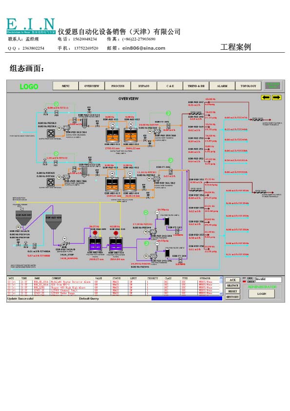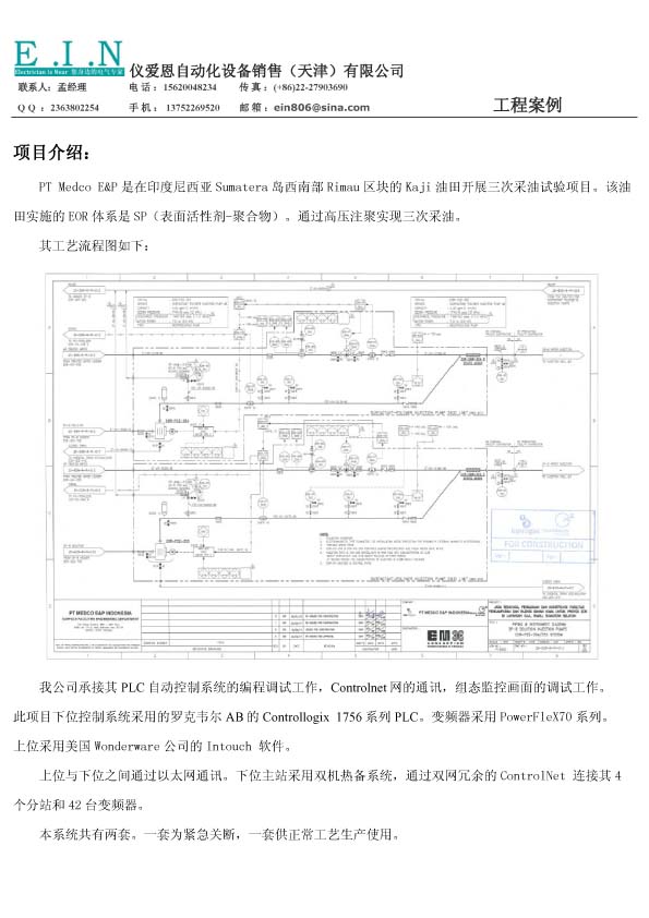 我公司承接其PLC自动控制系统的编程调试工作,Controlnet网的通讯,组态监控画面的调试工作。